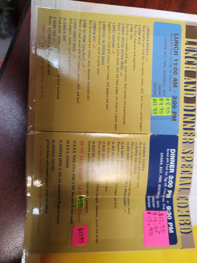 For those craving something refreshing, the Yum Woon Sen Salad combines glass noodles, shrimp, and a zesty lime dressing, invoking the vibrant flavors of Thailand. Their Wonton Soup showcases a hearty blend of chicken and shrimp, ideal for a comforting meal.